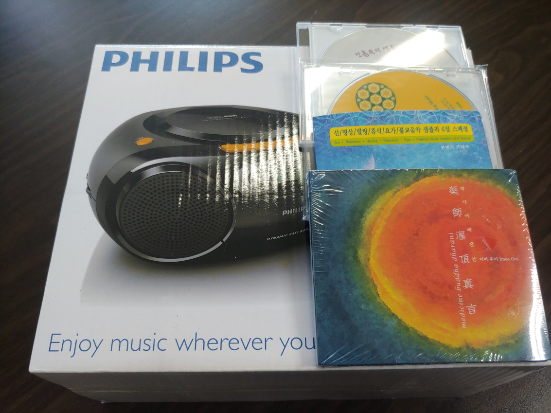 선물에 음악씨디가 있다. 그 중에 약사관정진언(Medicine Buddha Mantra)이 있다. 이미우이(Imee Ooi: 黃慧音) 음악으로 오리지널이다. 아픈 사람을 위한 치유음악이다. 그래서 약사관정진언(藥師灌頂眞言)이라고 한다. 듣고 있으면 차분해지고 기쁨이 솟는다. 반복적인 음악이 특장이다. 어떤 내용일까?