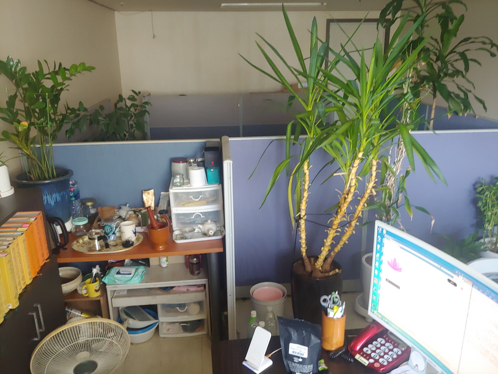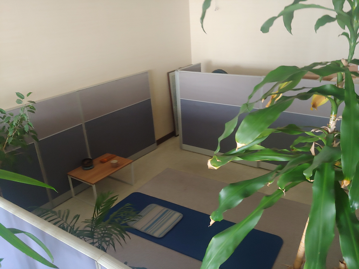 커피를 마실 때는 또 다른 아지트에 가서 마신다. 아지트에 또 아지트가 있는 것이다. 행선과 좌선을 할 수 있는 수행공간을 말한다. 작은 일인용 사무실 중앙에 칸막이를 하여 만들어 놓은 곳이다.