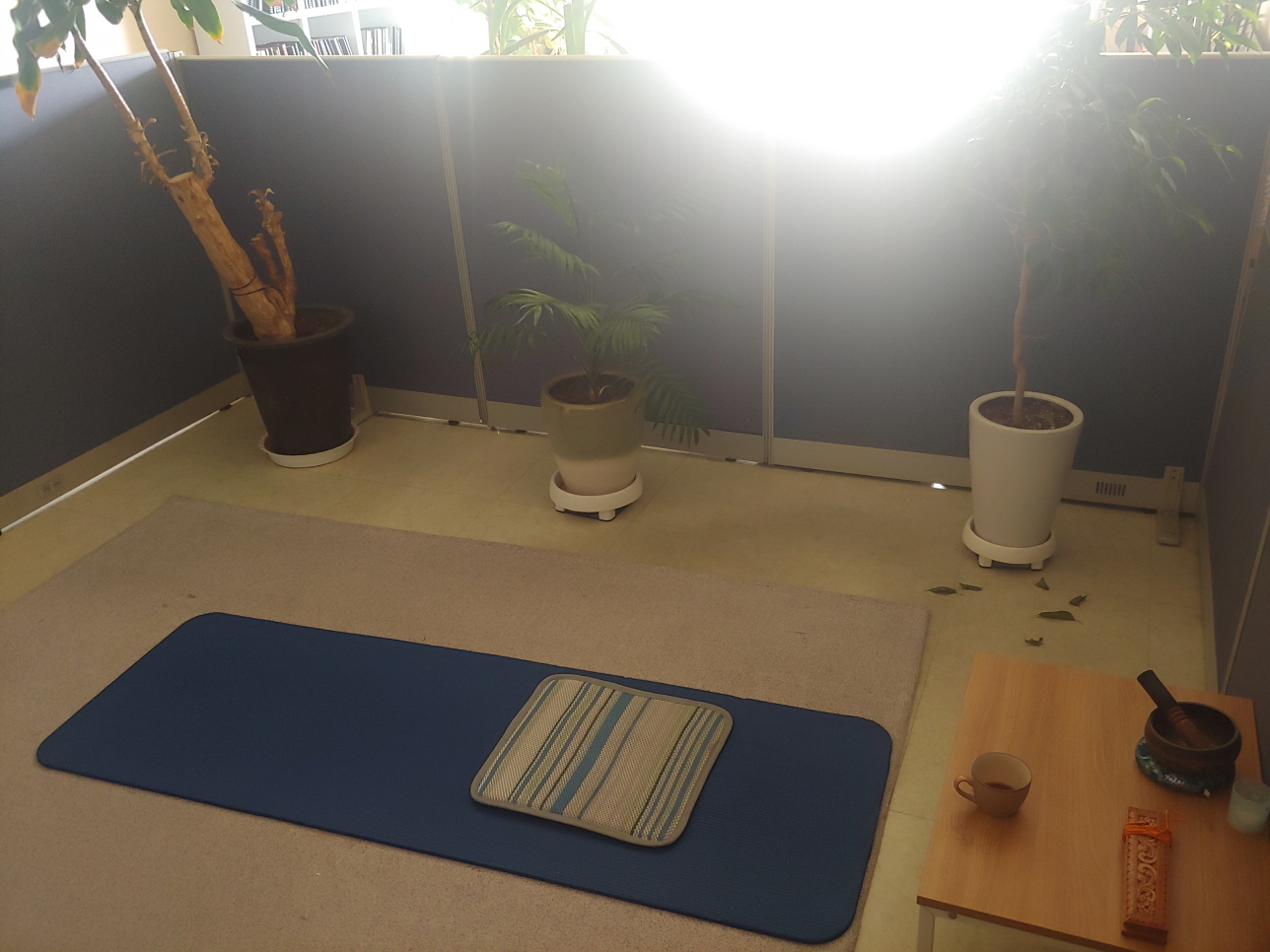 수행공간에 들어서면 분위기가 다르다. 같은 공간임에도 책상 의자에 앉아 있는 것하고 카페트 요가매트에 앉아 있는 것이 다른 것이다. 왜 그럴까? 한 공간은 일하는 공간이고, 또 다른 공간은 수행하는 공간이어서 그럴 것이다. 마치 칸막이가 속과 성을 가르는 것 같다.