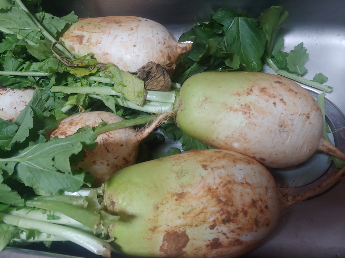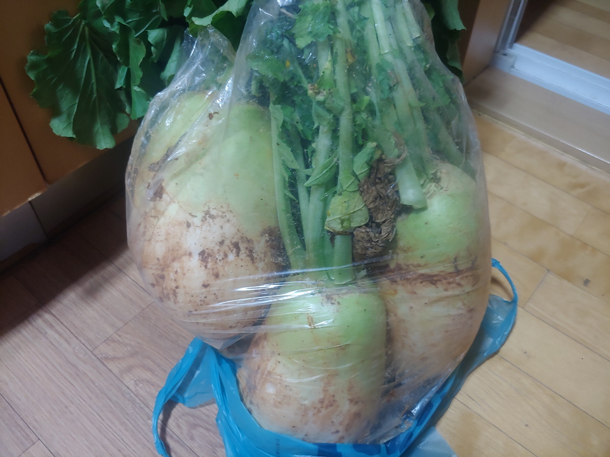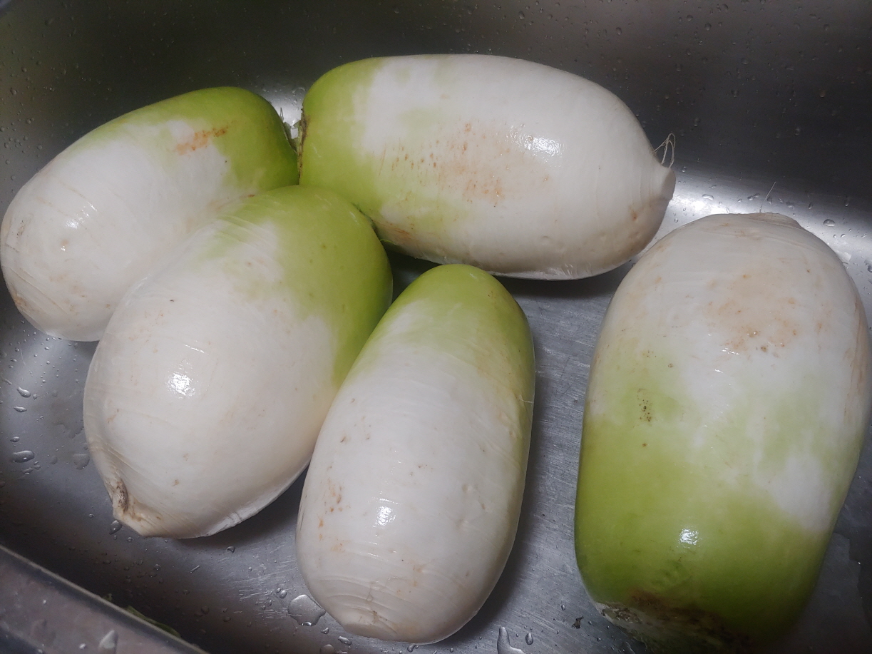 한번도 농사를 지어 본적이 없다. 남들이 지은 농산물로 먹고 살고 있다. 농부의 마음을 잘 모른다. 무우가 여기에 오기까지 여러 과정을 거쳤을 것이다. 무우 다섯개에 4800원에 샀는데 너무 싸서 미안함 느낌이 든다. 그러나 행사상품이기 때문에 문제없을 것 같다.