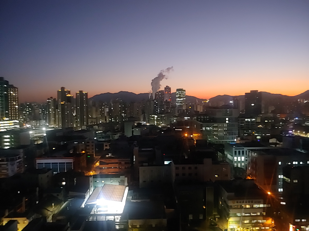 지금 시각 아침 7시 5분, 도시의 동녘에 동이 터간다. 동지가 지난지 며칠 되지 않았다. 하루가 다르게 동트는 시각이 단축되는 것 같다. 이제 세상은 서서히 양의 기운이 우세하는 시기가 될 것이다.