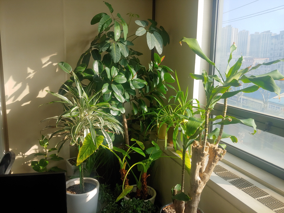 일터로 돌아왔다. 칠일만이다. 사무실에는 식물들이 반겨 주는 것 같다. 일주일 보지 않았을 뿐인데 잘 자란 것 간다. 여인초는 커다란 잎이 말아진 것이 펴진 것이 많다. 본격적으로 자라는 것 같다.