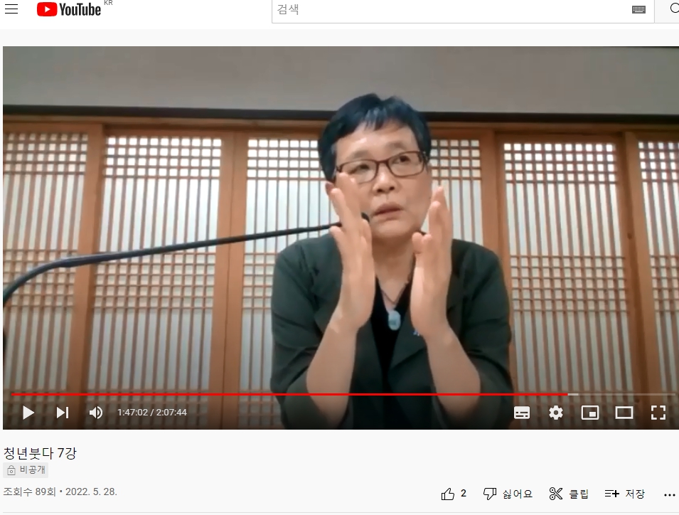 고미숙 선생의 청년붓다 7강을 유튜브로 들었다. 지난주 금요일 전재성 선생의 금요니까야모임과 겹쳐서 듣지 못했다. 담당에게 유튜브로 들을 수 있도록 요청해서 오늘 날 잡아서 무려 2시간 40분에 달하는 강연을 들었다.