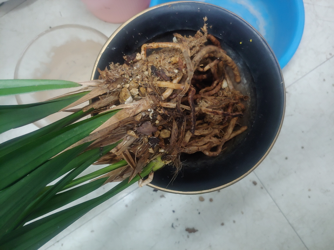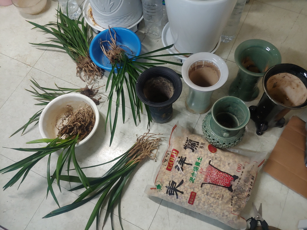 인터넷 주문한 난석이 도착하려면 이틀을 기다려야 한다. 그 기간에 난을 손보고자 했다. 그래서 난을 모두 화분에서 꺼냈다. 예상했던 대로 화분안은 축축했다. 그럼에도 계속 물만 부었던 것이다.