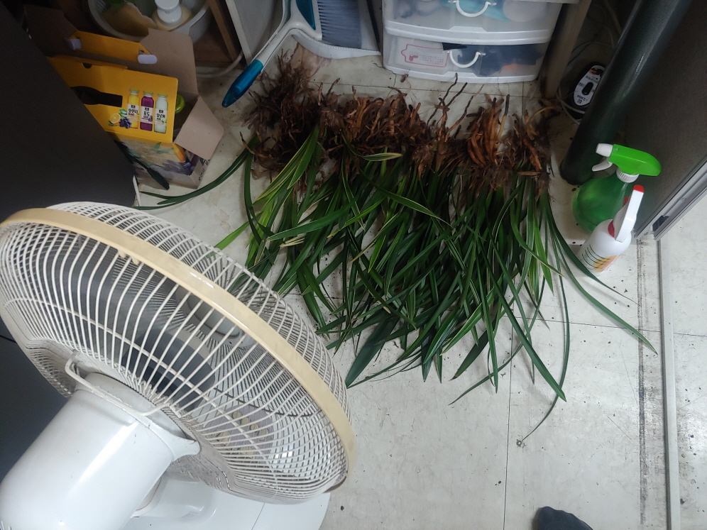 뿌리는 썩은 곳이 많았다. 썩은 곳은 잘라내고 이물질을 털어 냈다. 물기를 말려야 했다. 선풍기를 틀어서 말렸다. 난석이 도착할 때까지 이틀을 상온에서 말렸다.