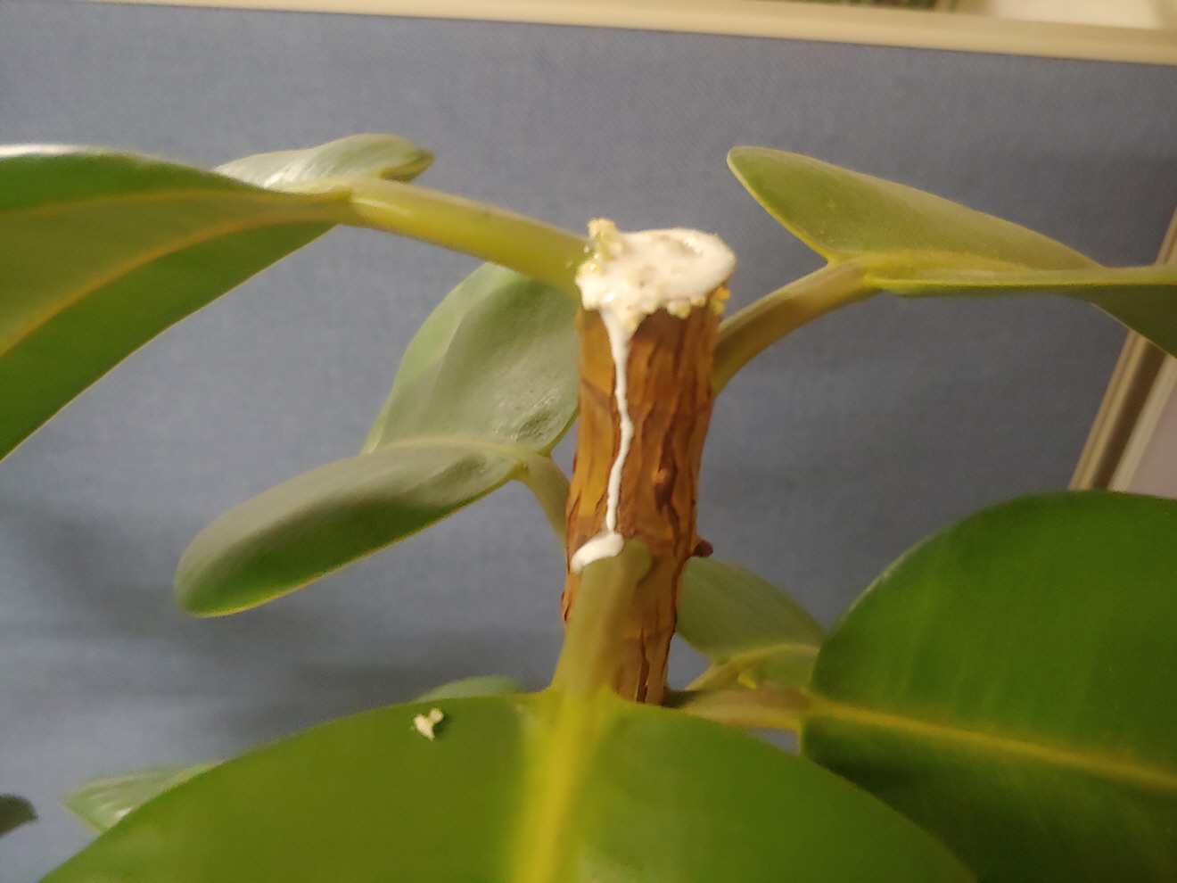 어떤 나무이든지 고유성이 있는 것 같다. 고무나무도 고유성이 있다. 고무나무진액이 고유성이라고 볼 수 있다. 고무진액은 타이어나 라텍스와 같은 고무제품의 원료가 된다. 예상치 못한 진액분출로 당황했다.