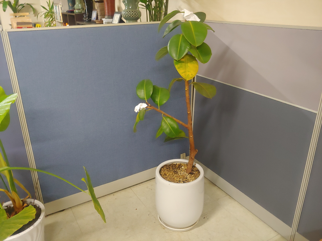 고무나무는 주운 것이나 다름없다. 오피스텔 미화원이 떠날 때 주고 간 것이다. 석달 되었다. 그 사이에 폭풍성장했다. 마치 꼬챙이처럼, 막대기처럼 위로만 자랐다.