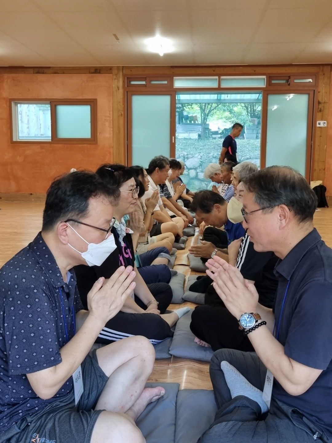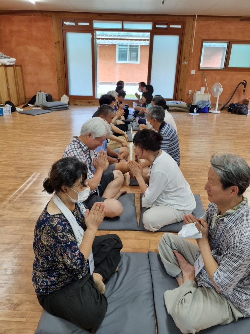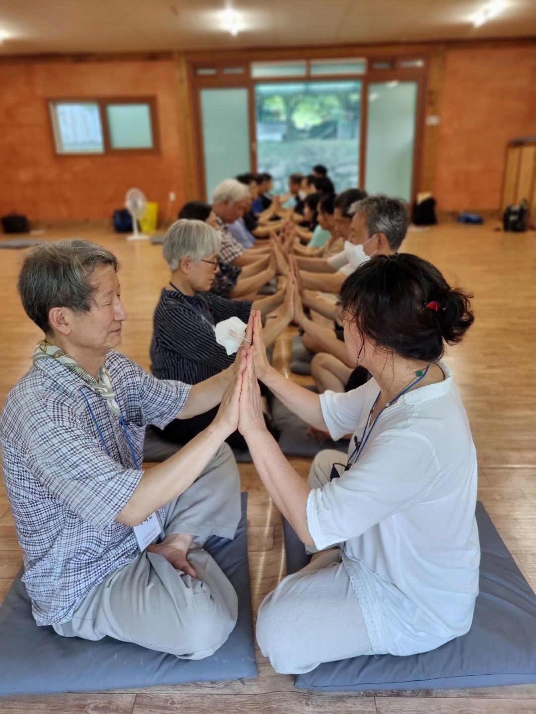 상대방과 어떻게 해야 할지는 사회자에게 달려 있다. 상대방 손바닥과 합장하며 온기를 느껴 보라고 한다. 상대방과 직접 접촉이다. 온기를 통해서 상대방을 직접적으로 느끼게 된다. 편한 사람이라면 부담 없을 것이다. 불편한 사람이라면 감정의 동요가 있다. 그러나 피할 수 없다.