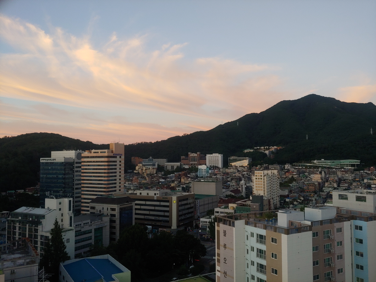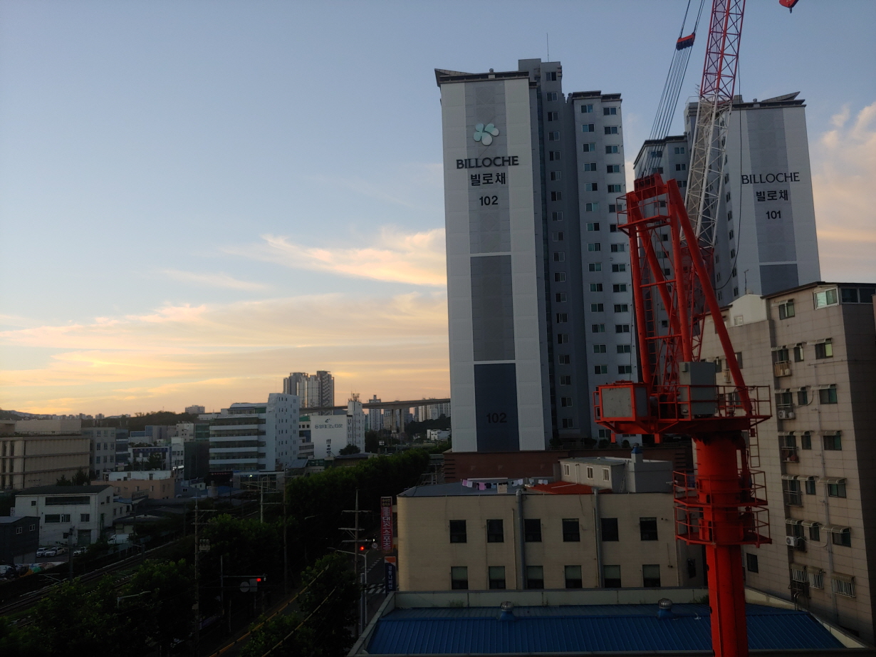차를 일터로 모았다. 건물 꼭대기층에서 새벽노을을 찍기 위해서였다. 급히 차를 몰았다. 신호등도 무시했다. 꼭대기층에 도착한 것은 새벽 5시 55분이었다. 그러나 새벽노을은 끝물이었다. 그 대신 사방이 새벽노을이었다. 이런 것은 처음 보는 것이다.