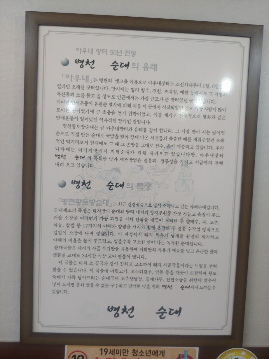 코로나 기간 2년 동안 36곳의 식당을 순례했다. 그리고 글을 남겼다. 언젠가 한권으로 책으로 내려고 한다. 그런데 아직도 가보지 않은 식당이 많다는 것이다. 그 중에 하나가 안양아트센터 바로 앞에 있는 순대국밥집이다. 식당이름은 ‘병천순대’이다. 안양 1호점이다.