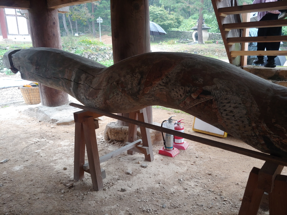 대곡사에는 보물이 두 개 있다. 대웅전과 범종루를 말한다. 정유재란 때 불타 버린 것을 중건 한 것으로 4백년 되었다. 보물을 보니 고색창연한 골동품 같다. 어떻게 목조건축물이 지금까지 유지되어 왔을까? 한국전쟁 등 전란이 있었음에도 이렇게 우뚝 서 있는 것은 사람이 살지 않는 산중에 있었기 때문일 것이다.