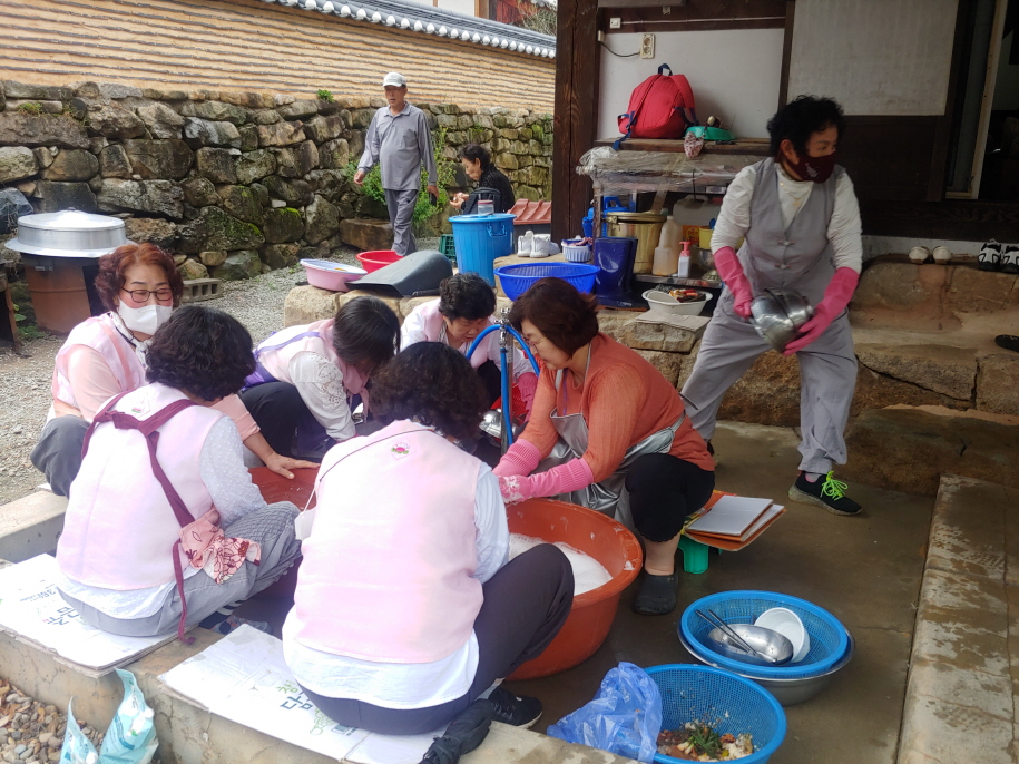 대곡사 신도들이 총동원 된 것 같다. 서울에서 손님들이 온다고 하여 도량을 꽃으로 장식하고 비빔밥을 준비했다. 설거지도 신도들이 해 주었다. 이럴 때는 서울 절 사람들이 시골 절 사람들에게 도움을 주어야 할 것이다. 불사에 동참하는 것이 좋은 예일 것이다.