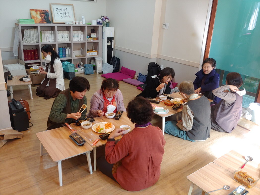 점심은 선원에서 제공한 김밥을 먹었다. 일년만에 와보는 선원이다. 마치 아무일도 없었던 것처럼 자연스럽게 행동했다. 안면 있는 도반들이 있었기 때문이다. 언제든지 가면 반겨 주는 사람들이 있다. 마치 고향에 온 것 같다.