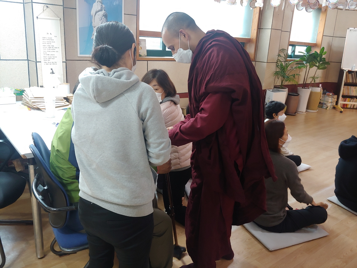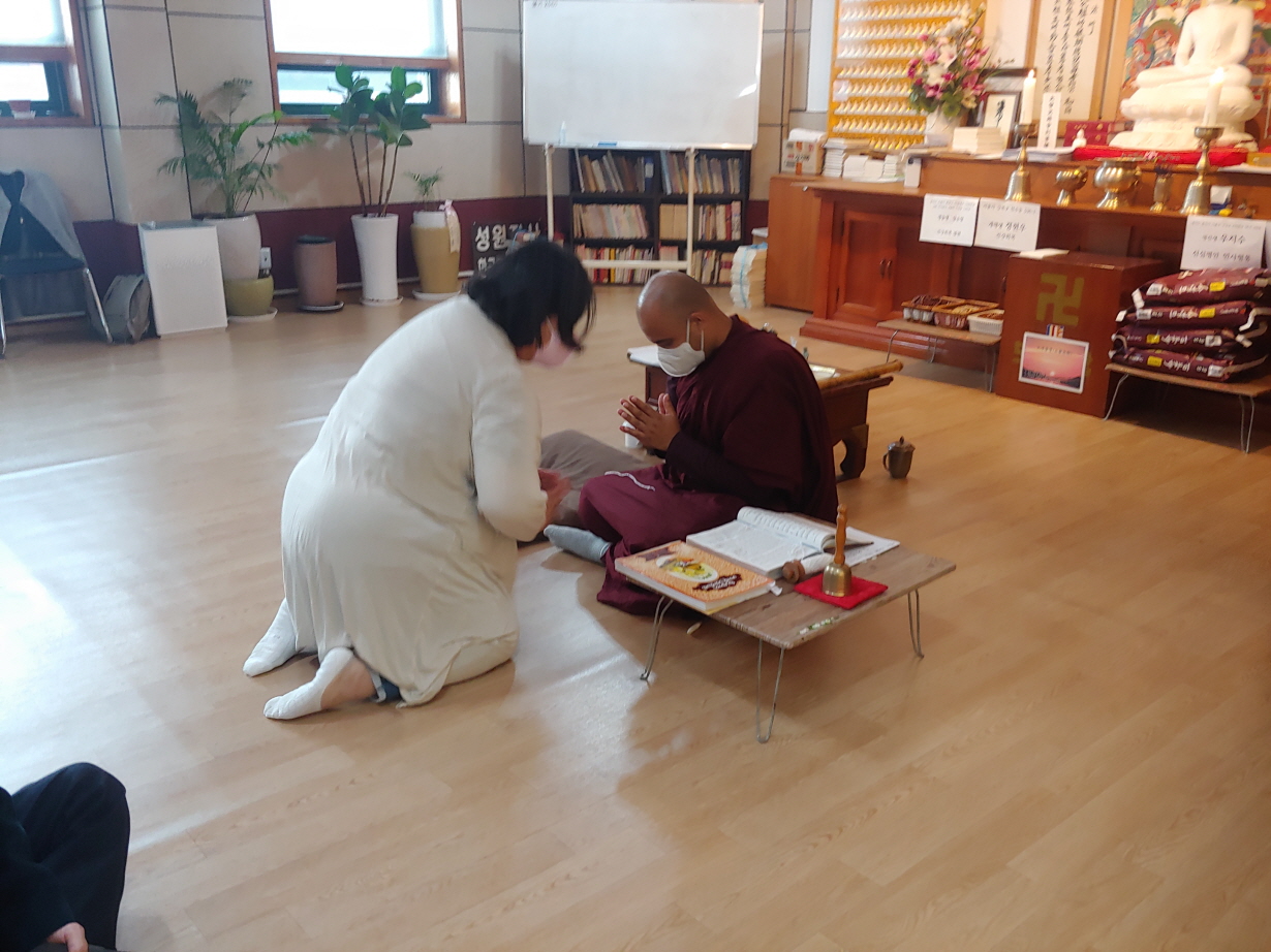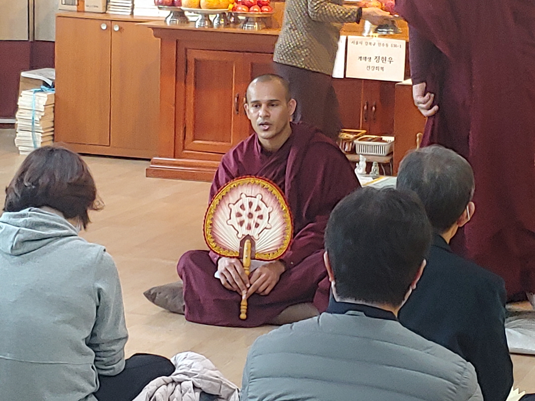 스리랑카 가사를 입은 스님이 목탁치며 염불하는 모습이 생소했다. 몸이 아픈 송위지 법사를 대신해서 한 것이다. 한국스님이 있었다면 더 좋았을 것이다. 그러나 재가자가 창건주로 있고 재가자가 의식을 진행하는 절에서 한국스님이 있기는 쉽지 않을 것이다.