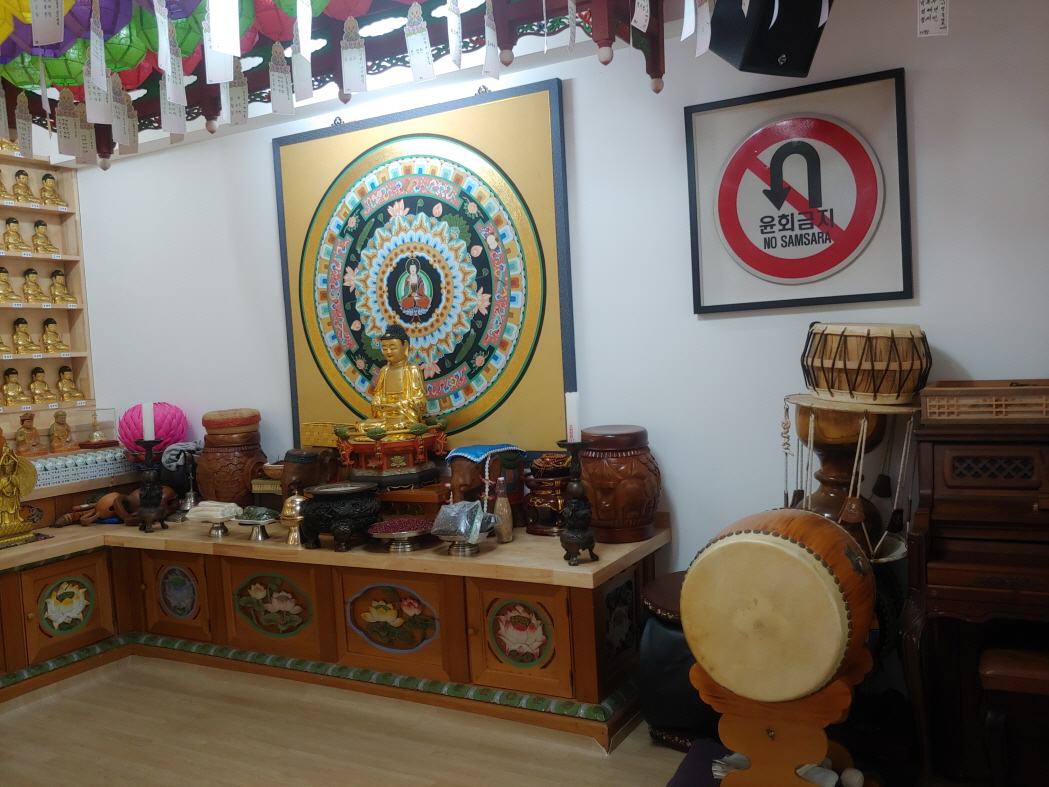 새절은 산뜻하다. 이전 시장 상가에 있던 것과는 분위기가 다르다. 마치 새집같다. 법당에서 눈에 띄는 것이 보였다. 윤회금지 팻말이다. 역촌시장 열린선원에서 봤던 것이다. 윤회하지 말라는 것이다.