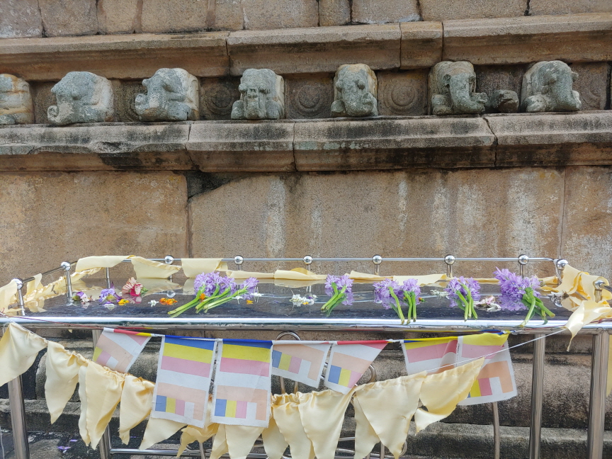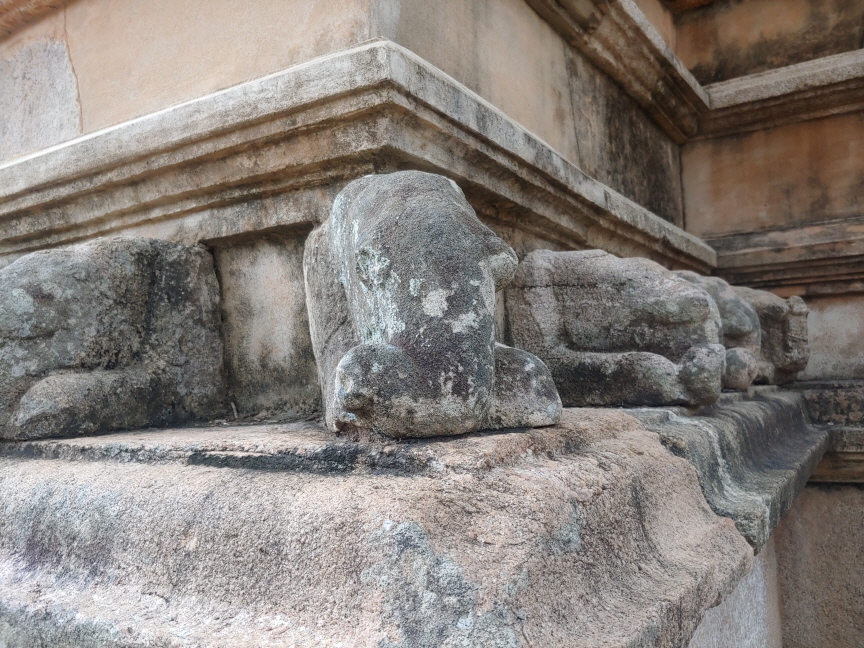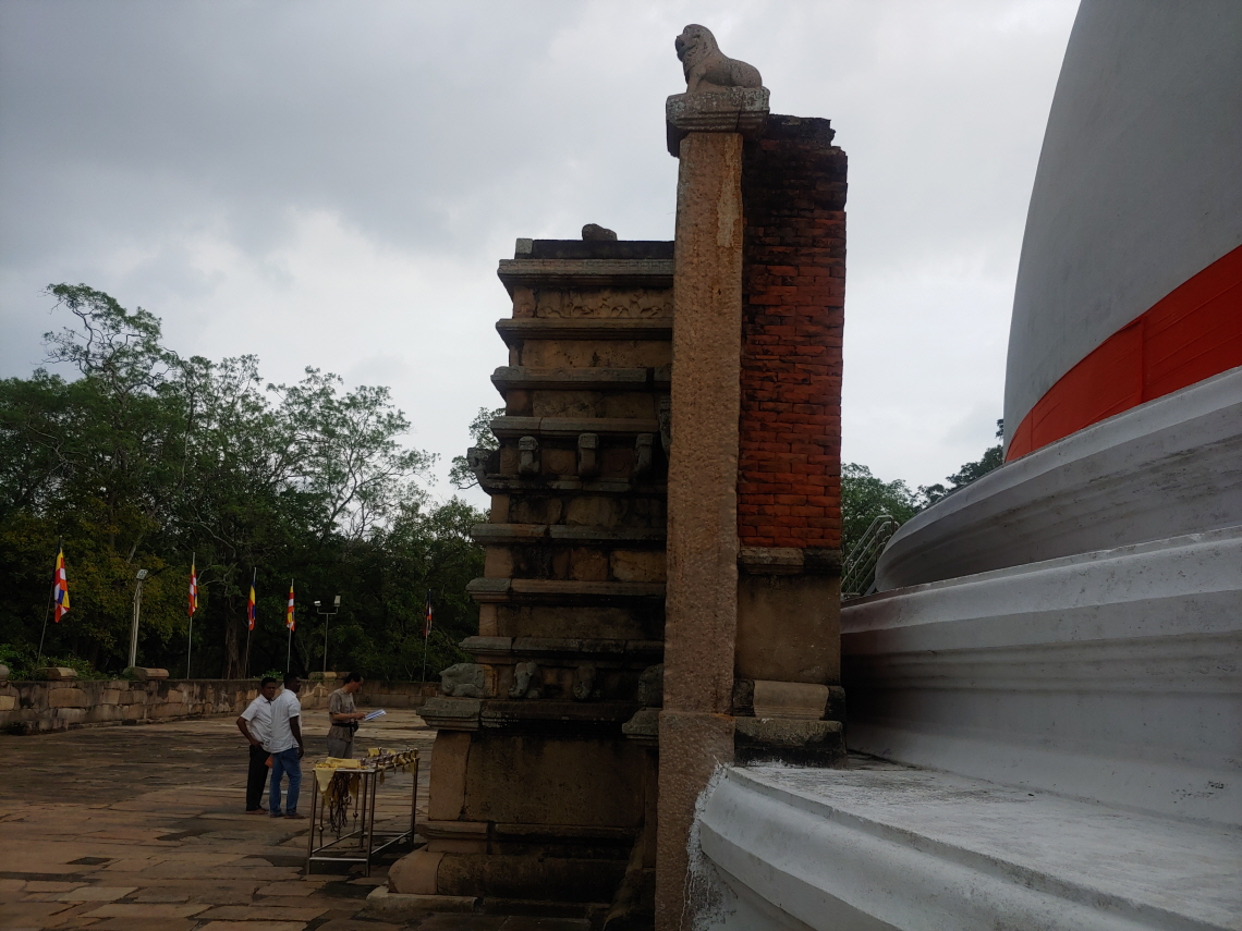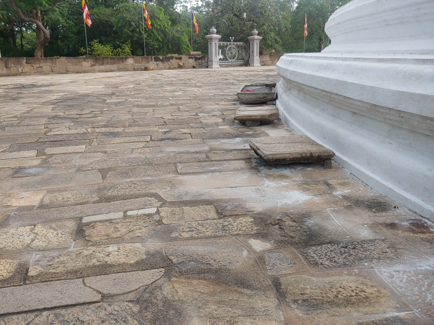 시간과 공간을 초월해서 스리랑카에 왔다. 그 옛날 스님들과 불자들이 탑돌이 했던 것처럼 탑을 한바퀴 돌았다. 오래된 기단과 바닥의 바위에서 옛날을 본다. 불탑 주변에는 깨진 불상과 갖가지 부서진 석재가 있다. 아마도 이곳을 복원할 때 발견된 것 같다.