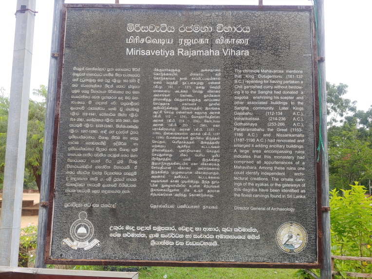 미리사베티야 다고바를 한바퀴 돌았다. 1990년대 복원한 것이긴 하지만 역사가 매우 오래 되었다. 현지에 있는 설명문을 보면 기원전 2세기 두투게무누(Dutugemunu, 161-137 B.C) 왕에 의해 건립 되었다. 두투게무누 왕은 외적 엘라라 왕을 격퇴한 후에 미리사베티야 불탑을 세워 승가에 기증한 것이다.