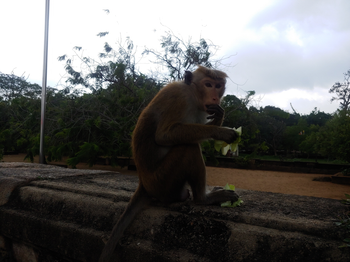 미리사베티야 불탑을 돌 때 원숭이 한마리를 발견했다. 원숭이는 불자들이 공양한 꽃을 먹고 있었다. 그 먼 옛날에도 이곳 불탑 주변에는 원숭이들이 살았을 것이다. 원숭이를 보자 사람으로 태어난 것이 얼마나 다행스런 것인지 알 수 있을 것 같다.