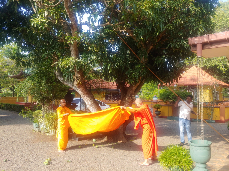 마침 마당 한가운데 망고나무에 열매가 열렸다. 수확할 때가 된 모양이다. 운전기사 가미니가 망고 따는 것을 도와 주었다. 혜월스님에 따르면 이곳 승원에서 나는 망고가 특별한 것으로 다른 데 있는 것보다 훨씬 더 맛이 있다고 한다.