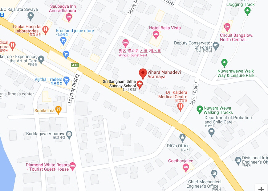 혜월스님을 따라 스리랑카 비구니 승원을 가게 되었다. 아누라다푸라 시내에 있는 것은 분명하다. 지도로 위치를 확인하고 싶었다. 승원 이름을 기록해 놓은 것이 큰 도움이 되었다. 구글지도에서 위치를 찾아 낼 수 있었다.