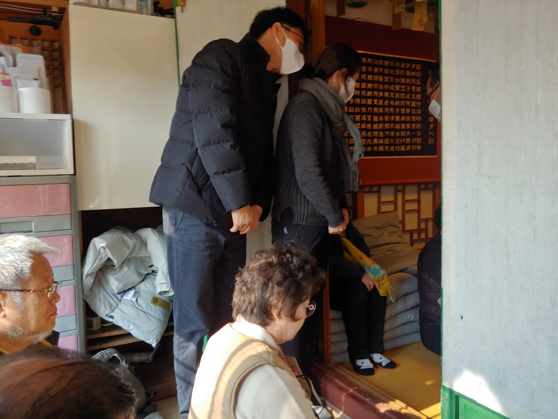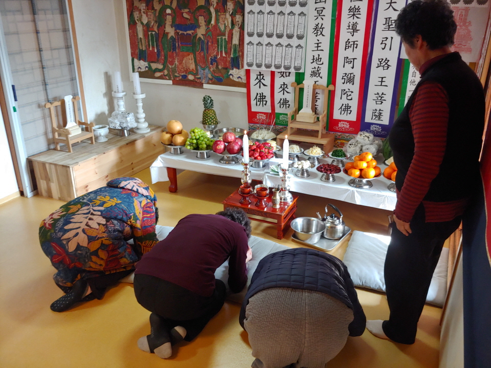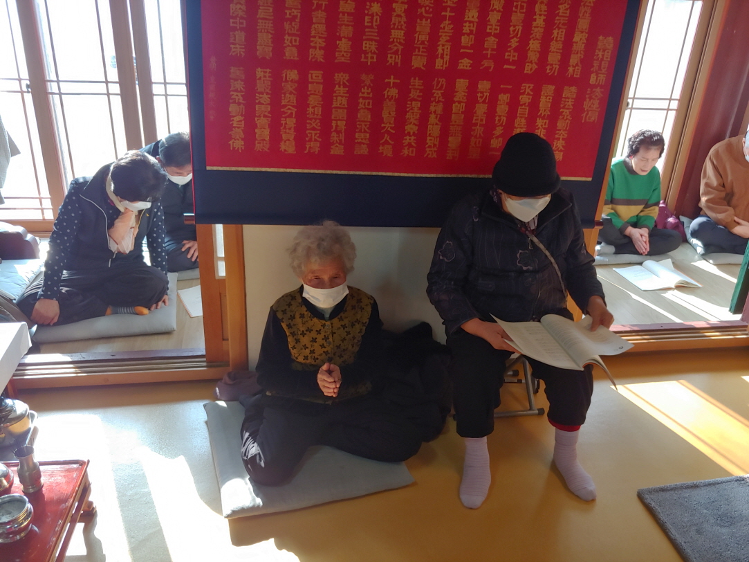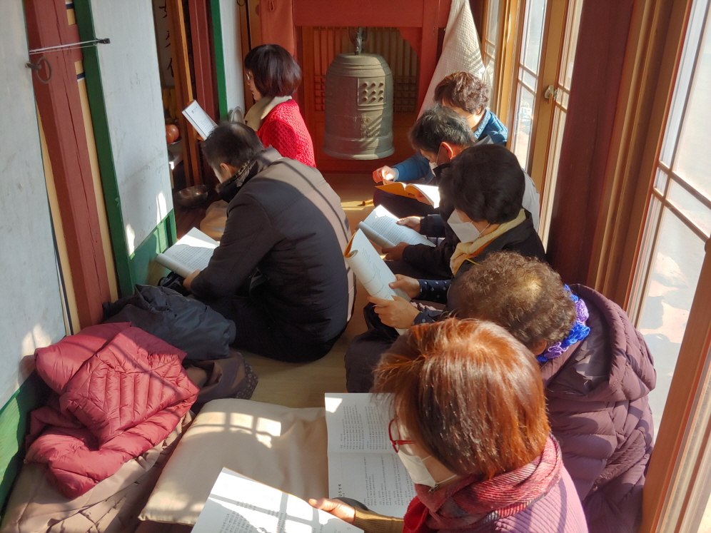 오늘 30명이상 온 것 같다. 법당이 작아서 다 수용할 수 없다. 반은 툇마루에 앉았다. 들어가지 못한 사람들은 밖에 서 있었다.