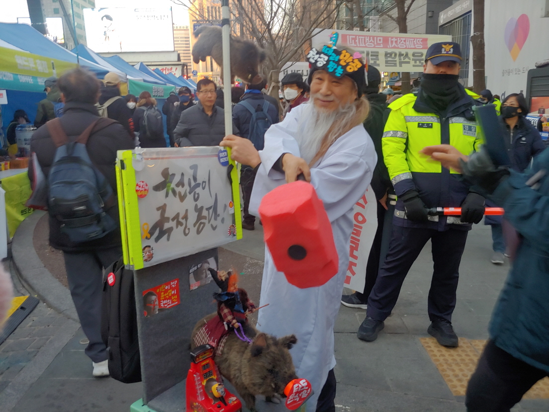 말미에 소리가 요란한다. 상황을 파악하는데 0.5초도 걸리지 않았다. 태극기부대 맞불집회가 남대문 가까이에 있는 곳에서 열렸기 때문이다.