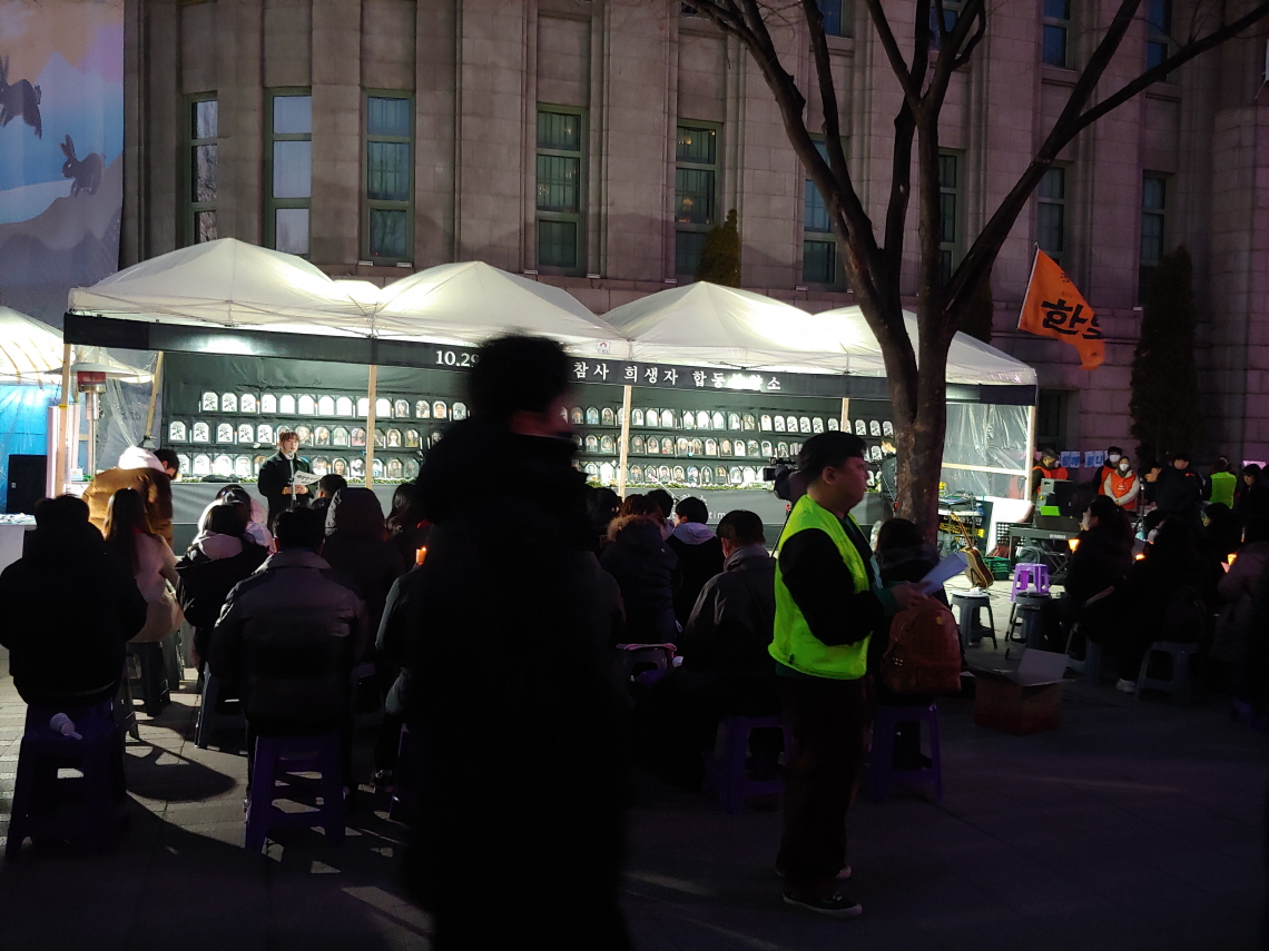 오늘 시청에 가서 두 곳의 행사를 보았다. 촛불대행진과 10.29 이태원참사 추모제를 말한다. 손이 시러울정도로 추운 날씨에도 사람들이 모였다. 사람들은 마땅히 해야 할 일을 하는 것 같았다.