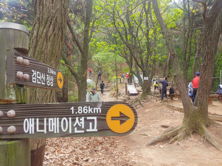 산행은 검단산역에서부터 시작된다. 3번출구에는 수많은 등산객들이 있다. 걸어서 애니메이션고로 이동한 후 본격적으로 산행이 시작된다.