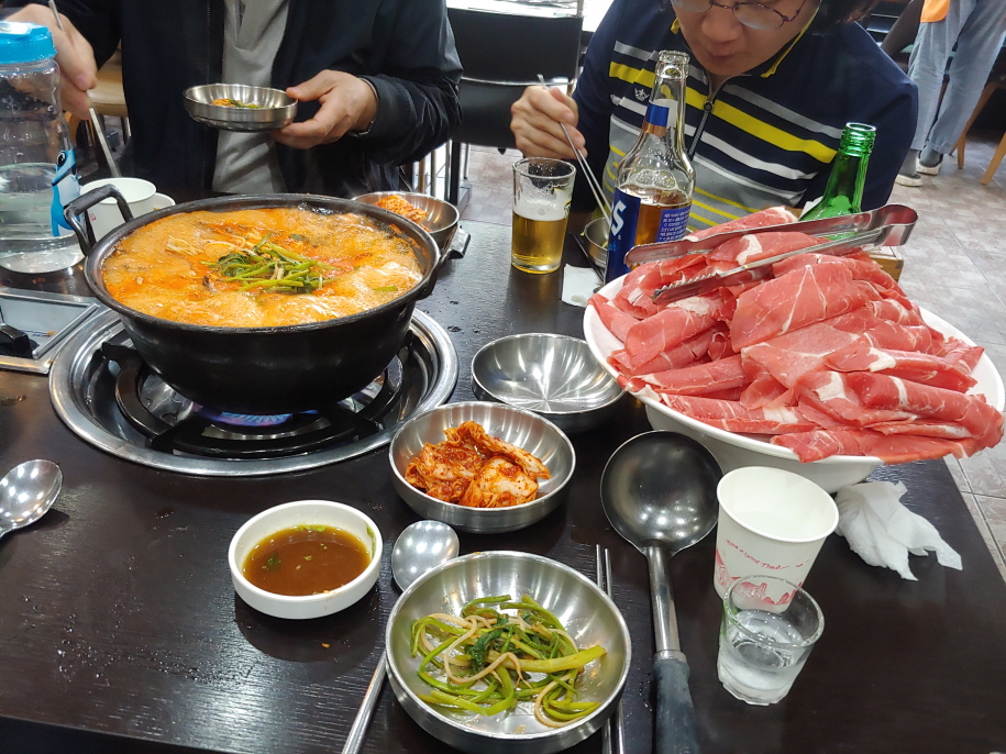 산행이 모두 끝났다. 일행은 천호역 근처에서 샤브샤브칼국수로 식사를 했다. 이렇게 해서 4월 정진산행모임이 마무리 되었다. 다음 5월 산행은 관악산 삼성산이다.