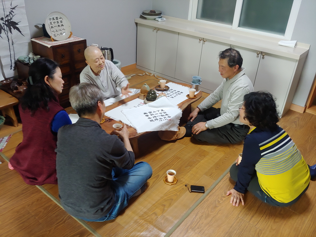 스님의 배려로 법당에서 삼배할 수 있었다. 그런데 비구니 스님은 이것도 인연이라 하면서 차를 마시고 가라고 했다. 이에 산행팀은 생각지도 않게 스님과 차담을 하게 되었다.