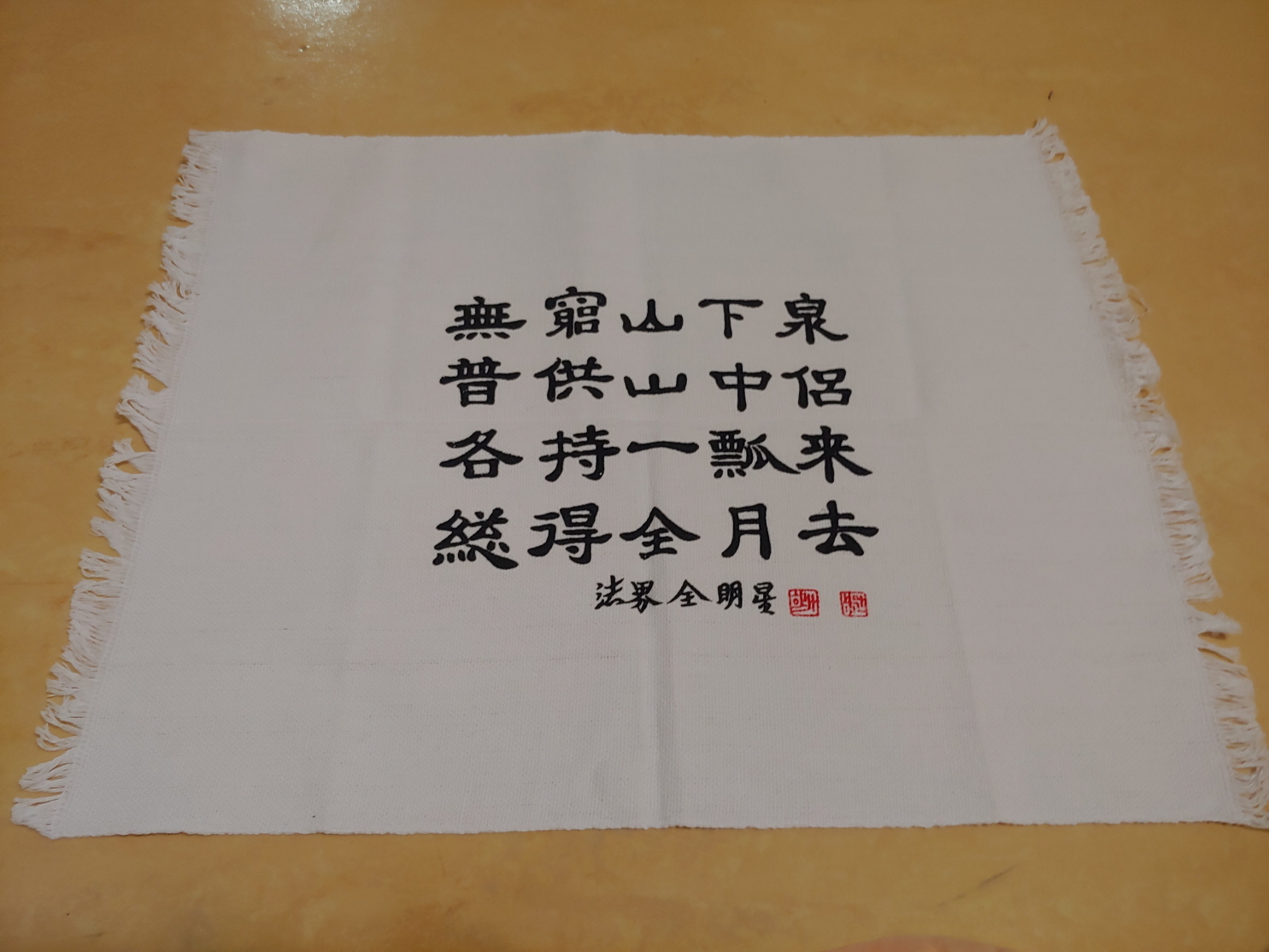 이 게송은 법계 김명성 스님이 지은 것이다. 이 게송을 다포에 인쇄해서 선물용으로 만들었다.