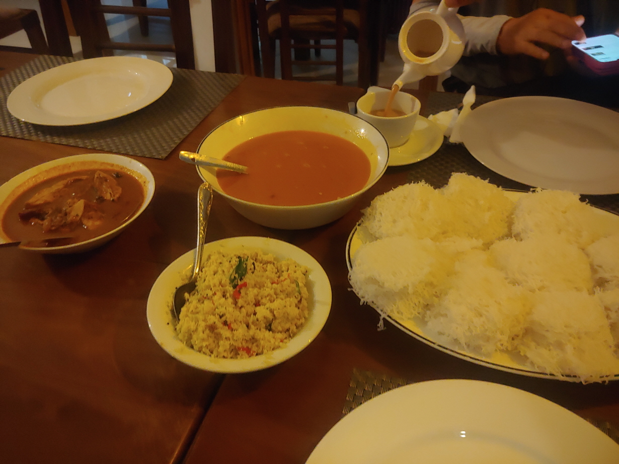 호텔에서 아침을 먹었다. 시설은 낡고 불편했지만 조식은 먹을 만 했다. 스리랑카 사람들이 먹는 주식인 카레라이스가 메인 메뉴이다. 가미니에 따르면 타밀식 식사라고 했다.