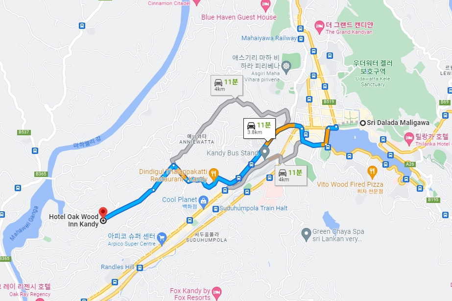 오크우드호텔은 어디쯤 있을까? 구글 지도검색을 해 보았다. 지도를 보니 명확하게 드러난다. 불치사에서 남서쪽으로 3.8키로지점에 있고 11분 걸린다.