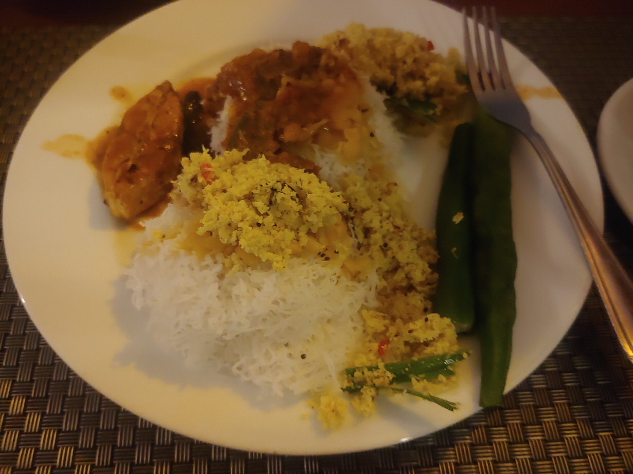 카레라이스는 강한 향신료와 함께 먹는다. 향신료가 들어간 스프가 있어서 부어먹는 것이다. 또한 생선이 들어간 짠 맛의 찌게도 있었다. 면으로 된 다발도 있어서 밥과 함께 먹었다. 여기에 스리랑카 홍차가 빠질 수 없다.