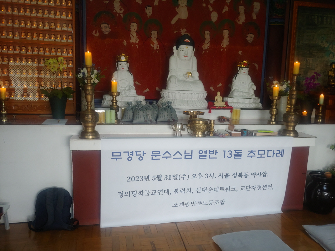 문수스님 추모제가 약사암에서 있었다. 문수스님 소신공양을 기리기 위해서 2023년 5월 31일 오후 3시에 재가불교단체 회원들이 성북동 약사암에 모였다.