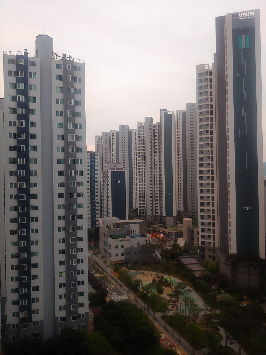동이 트는 새벽이다. 창 밖은 온통 아파트 숲이다. 고층에서 바라 본 세상은 콘크리트 빌딩뿐이다. 수직으로 뻗은 타워형 아파는 기세가 좋다. 인공구조물도 때로 아름답게 보일 수 있는 것 같다.
