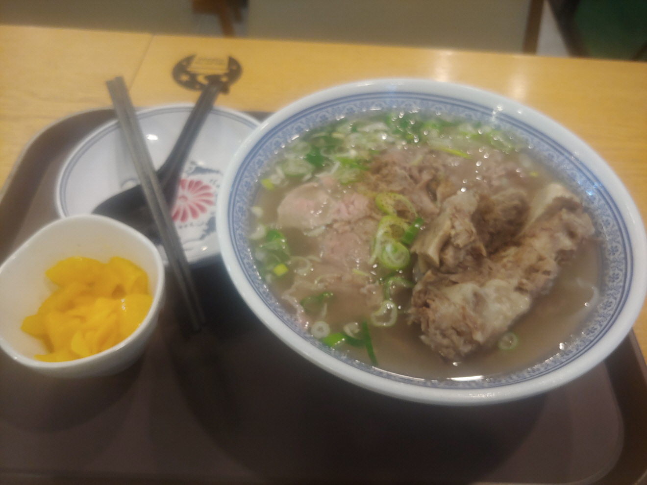 주문한 왕갈비쌀국수가 나왔다. 예상한 대로 푸짐 했다. 무엇보다 갈비 한대가 있는 것이 든든했다. 마치 갈비탕을 먹는 것 같은 기분이 되었다. 그런데 이 쌀국수는 면이 두터운 것이 특징이다. 지금까지 가는 쌀국수만 먹어 본 것 같다. 면발이 두터운 것은 처음이다.