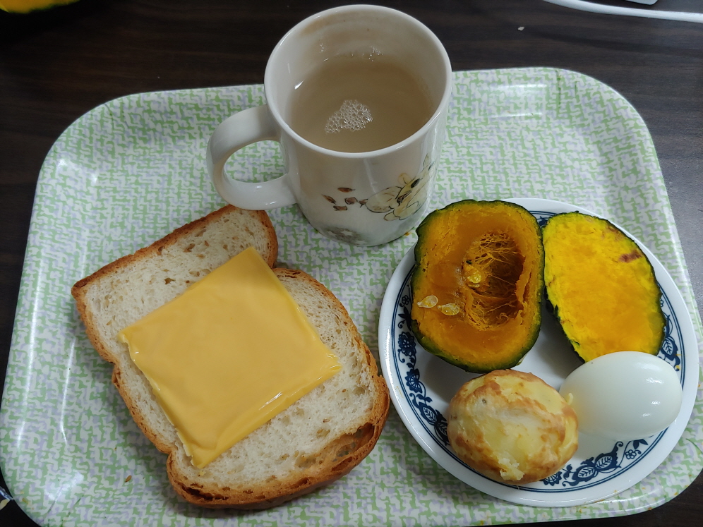 밤호박은 아침 한끼 식사로 충분하다. 밤호박과 감자, 계란, 샌드위치, 여기에 꿀차와 함께 하면 훌륭한 아침 한끼 식사가 된다. 밤호박 맛을 아는 사람은 찾게 되어 있다.