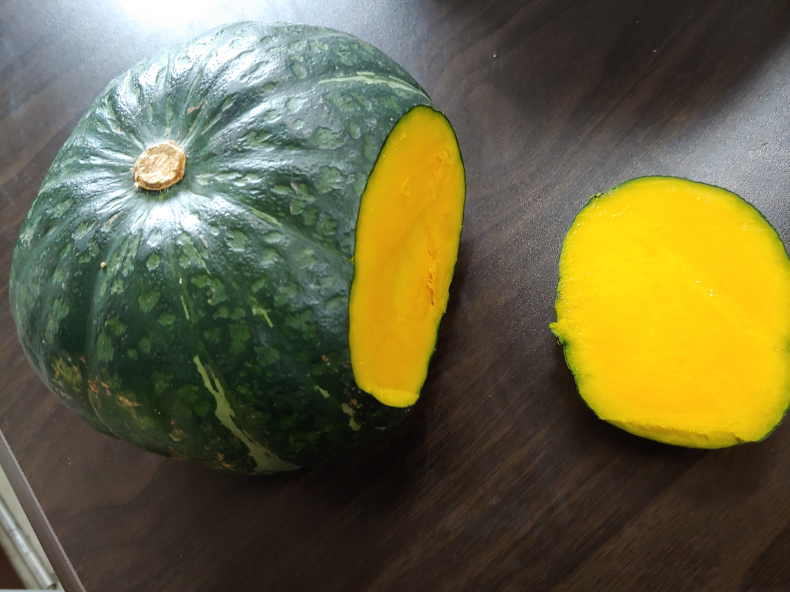 단호박과 밤호박을 비교해 보고 싶었다. 맛이 어떤지 보고 싶은 것이다. 밤호박은 7-8년 먹었으므로 맛을 알고 있다. 밤처럼 달콤한 맛에 파근파근한 느낌이 특징이다. 단호박도 그런 것일까?