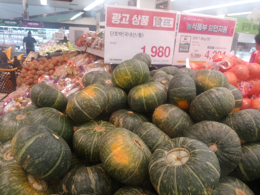 마트에서 단호박을 세일하고 있다. 광고상품이라 하여 한통에 1,980원이다. 국내산임을 강조한다. 단호박은 밤호박과 어떻게 다를까?