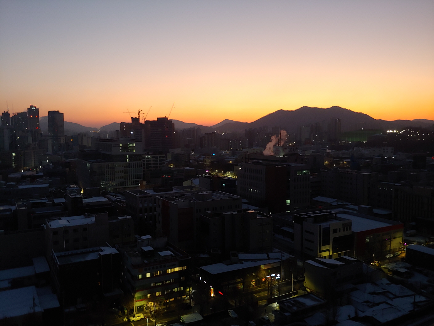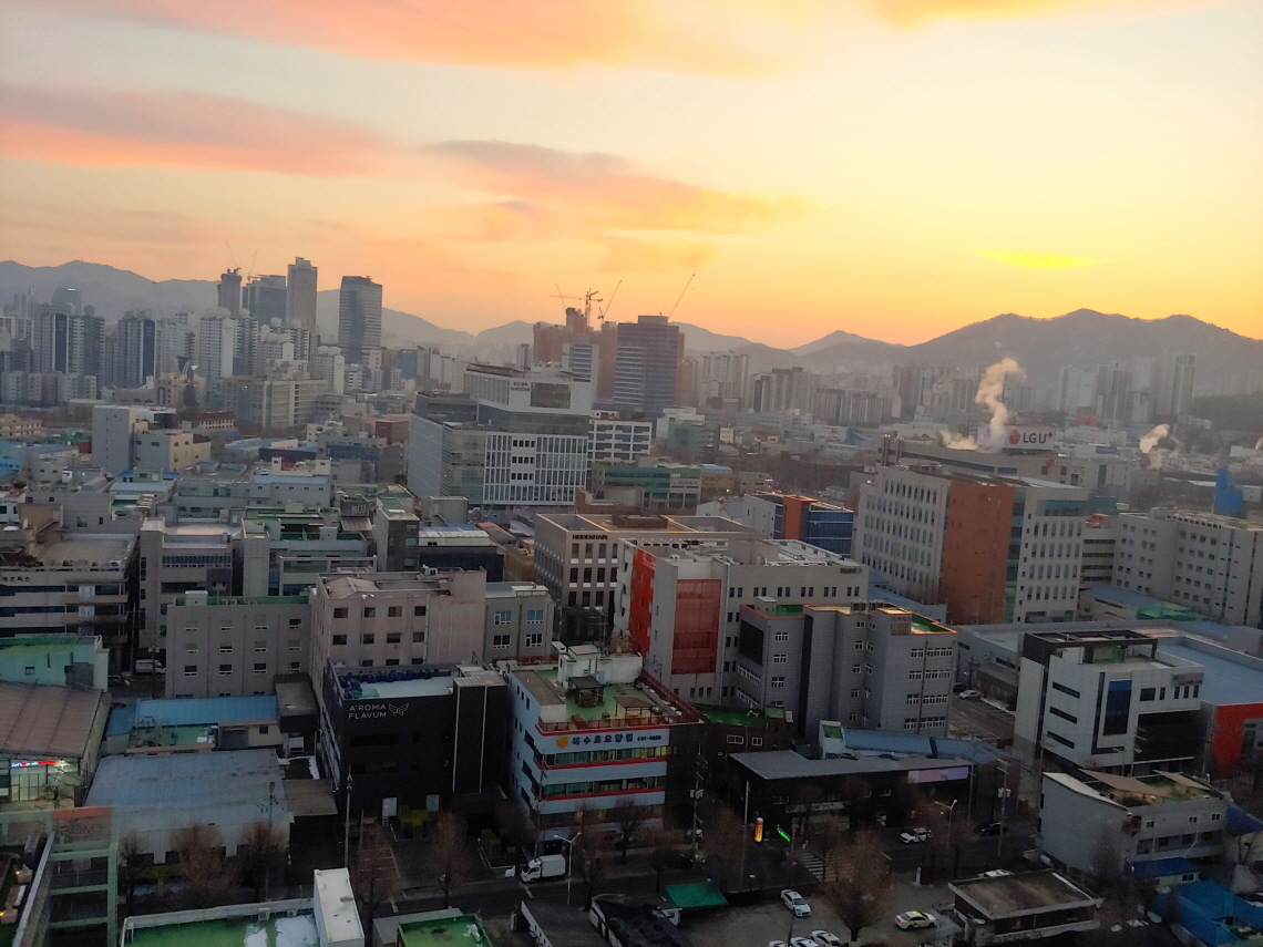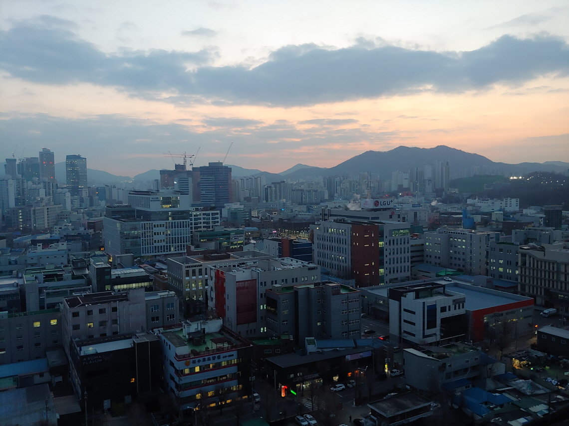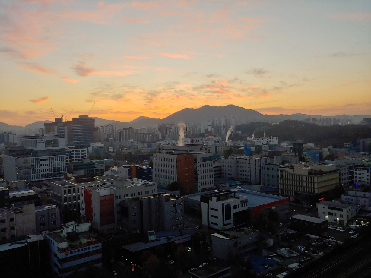 하루 일과를 시작할 때 오피스텔 꼭대기 층에 오른다. 18층 꼭대기에서 동쪽 하늘을 바라 본다. 해 뜨기 전에 동녘을 보기 위함이다. 구름이 약간 끼여 있을 때가 최상의 조건이 된다. 해 뜨기 전에 구름이 붉게 물들 때 태고의 신비를 보는 것 같다. 자연과 인공의 묘한 조화를 본다. 승리자의 입장에서 바라본다.