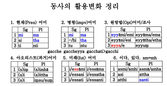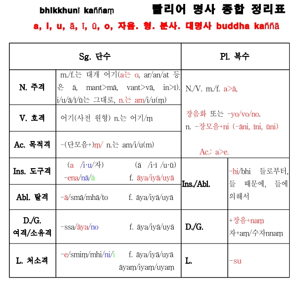 빠알리 문법과정 12주에서 남은 것은 표이다. 빠알리 문법을 체계적으로 정리하여 하나의 표로 만들어 놓은 것이다.