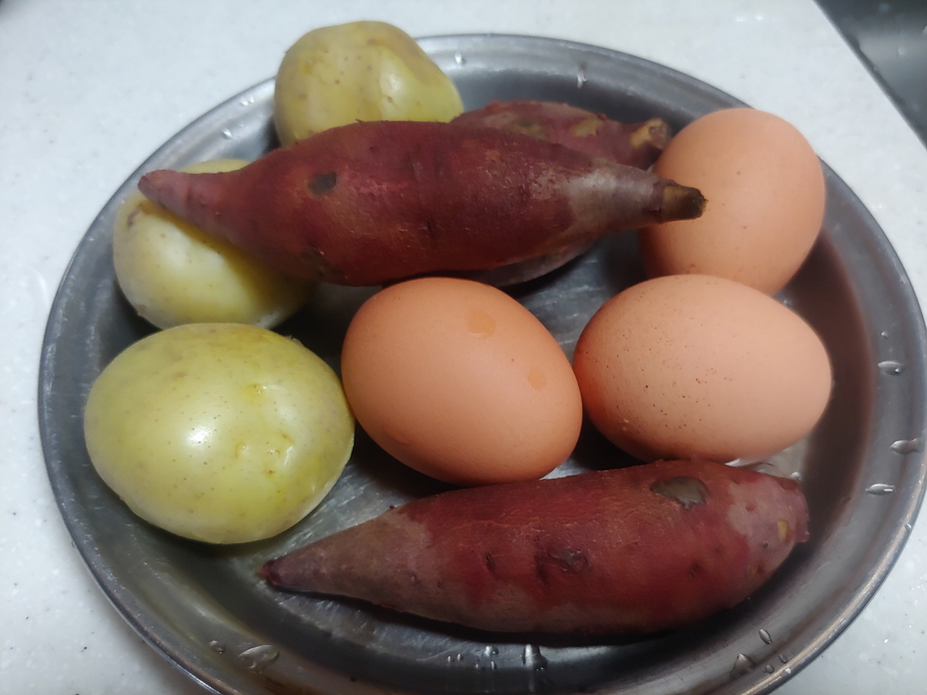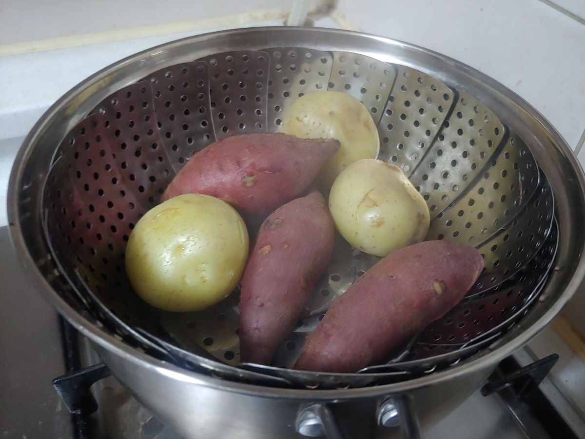 오늘 아침은 준비해 온 계란과 고구마와 감자, 그리고 치즈와 함께 하는 샌드위치 한쪽으로 식사했다. 음료수는 꿀물이다.
