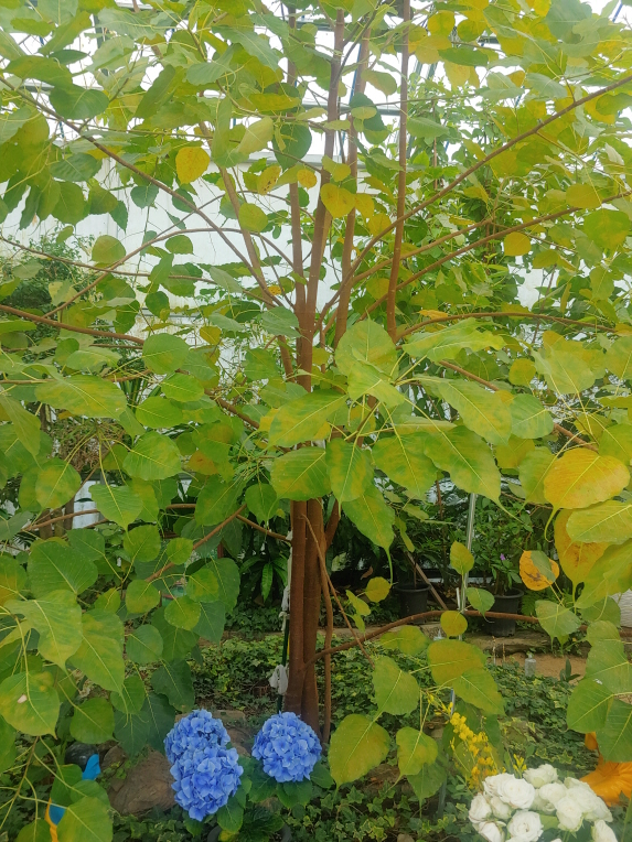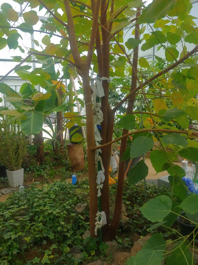 보리수는 2019년 처음 방문 했었을 때 법당 안에 있었다. 화분에 키우고 있었던 것이다. 그런데 오늘 보리수를 보니 온실 천정 높이까지 자랐다. 불과 사년만에 이렇게 빠르게 성장할 수 있을까? 이를 괄목상대(刮目相對)라 해야 할 것이다. 참으로 놀라운 일이다.