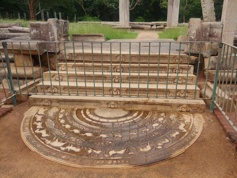 재작년 스리랑카성지순례 갔었을 때 문스톤이라는 것을 처음 알게 되었다. 사원 입구에 반달모양의 석판이 있는데 식물과 동물의 문양이 새겨진 것이다.