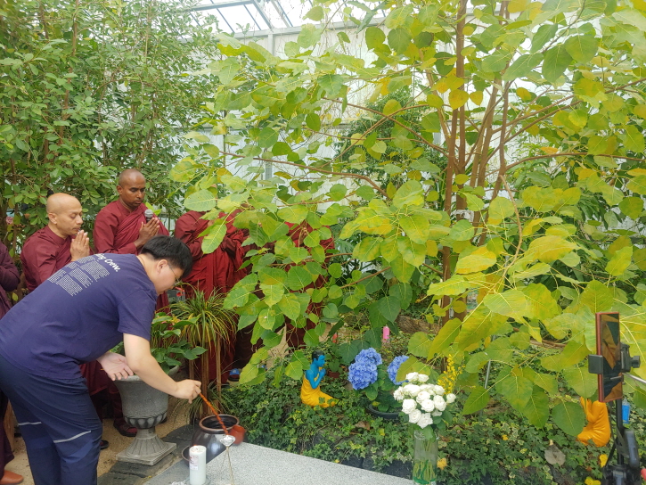 담마끼띠 스님은 보리수의 역사에 대하여 이야기 했다. 현재 아산 마하위하라에 있는 보리수는 부처님 당시 깨달음 나무의 후손이라고 했다.