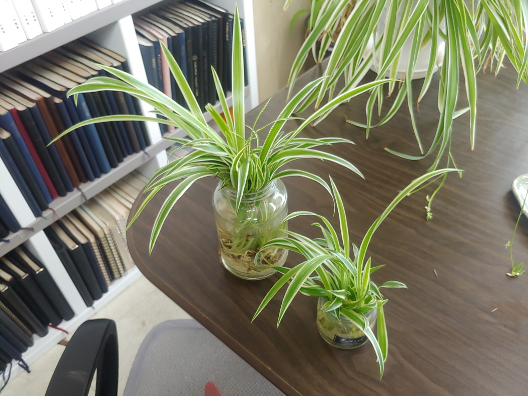 새끼접란을 페트병에 수경재배 했다. 수경재배한지 2주가 되자 뿌리가 만족할 만큼 나왔다. 이에 “화분에 옮기고 나니 사무실 분위기가 살아나는 것 같다. 위로 쭉쭉 뻗은 잎을 보니 생명의 기운을 느낀다.” (2020-10-09)라고 기록을 남겼다.