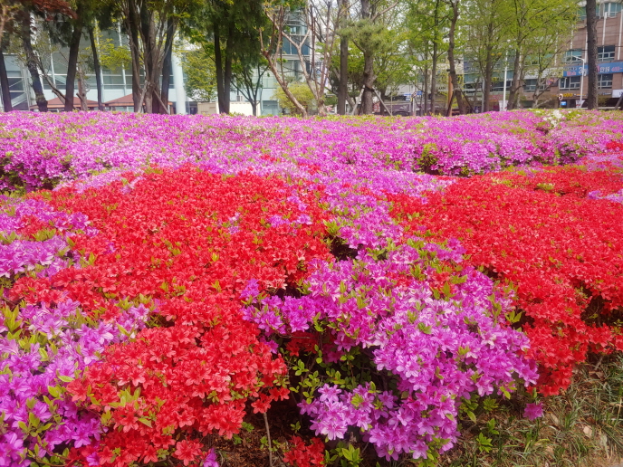 영산홍 만발한 명학공원에서 꿈의 계절이다. 울긋불긋 영산홍이 절정이다. 공기는 맑고 청정하다. 온도는 춥지도 덥지도 않고 적당하다. 이제 막 신록이 시작되고 있다. 여린 잎파리는 연두색이다. 연두의 세상이 되었다. 이런 봄날은 축복받은 계절이다. 가난한 자도 나이 든 자도 살 맛 나는 계절이다. 명학공원에는 하릴없는 노인들이 소일하고 있다. 명학공원과 문예회관을 배회하고 있다. 햇살이 좋아 경행하듯이 거닌다. 영산홍 꽃 속을 거닐면 천상에 온 것 같다. 오로지 이때만 누릴 수 있는, 살아 있는 자의 행복이다. 저 멀리 명학공원에서 일단의 사람 무리가 보였다. 문예회관 마당에서 어슬렁 거리다 본 것이다. 어떤 일일까? 호기심이 발동했다. 하릴없는 노인처럼 다가가 가 보았다. 여인들이 가득 있었다. 모자를 ..
