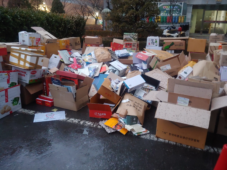 아파트 분리수거의 날에 매주 월요일저녁과 화요일 오전은 쓰레기 버리는 날이다. 좁은 아파트에는 쓰레기로 가득하다. 어디서 이 많은 쓰레기가 나왔을까? 아파트 단지 면적은 얼마나 될까? 아마 가로가 120미터 세로가 70미터 가량 되는 것 같다. 이 좁은 면적에 다섯 개의 동이 있다. 한동은 25층에 달한다. 세대 수를 계산해 보니 무려 300세대이다. 마치 닭장을 연상케 한다. 비좁은 아파트에 밀집해서 살다 보니 쓰레기도 엄청나게 나온다. 쓰레기 버리는 날에 쓰레기를 보면 그야말로 산더미를 이룬다. 매주 벌어지고 있는 일이다. 매주 월요일 오후 5시가 넘으면 사람들은 하나 둘 쓰레기를 들고 나온다. 어떤 이는 자동차로 나른다. 어떤 이는 이마트 카트로 나른다. 쓰레기는 잘 구분되어 있다. 종이를 버리는 ..